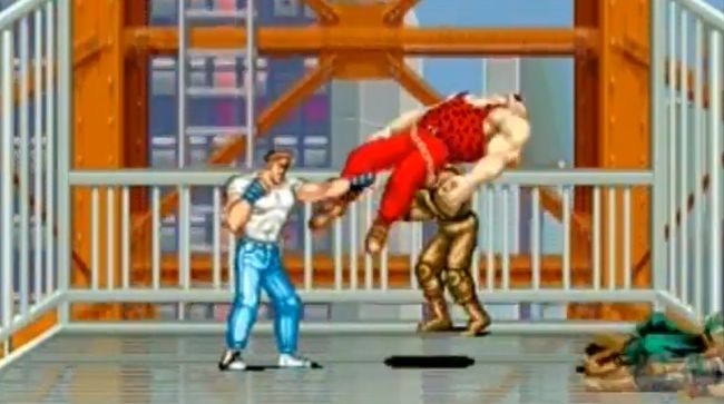 Porque esa es la finalidad última de las fases de ascensor: tirar a los demás sin que te tiren. Acabar con los enemigos con menos golpes de los necesarios es suficientemente tentador como para arriesgarse a acercarse al borde aún a riesgo de despeñarse como un perro. Me compadezco de los pobres encargados de mantenimiento que encuentren al día siguiente una montaña de cadáveres empalados entre la maquinaria del foso del ascensor y tienen que limpiarlo con una fregona por el sueldo base.
