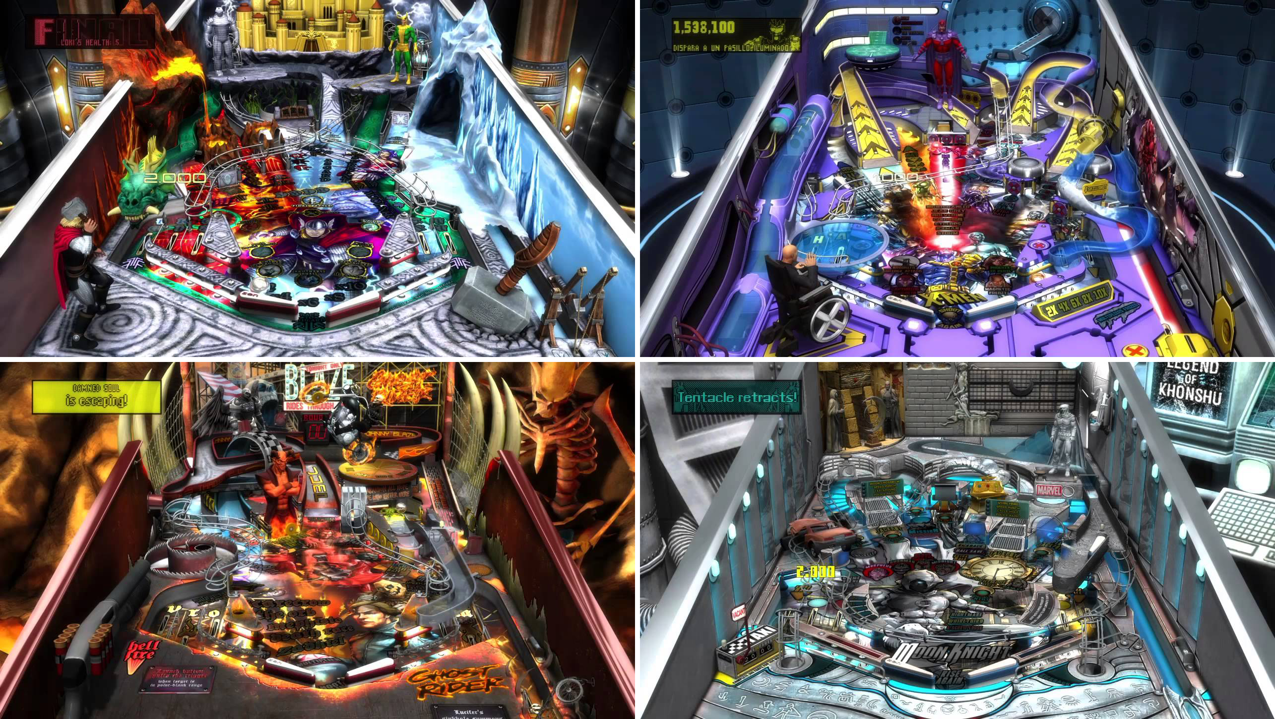 Imagino que el hecho de presentarnos a un héroe bastante desconocido para el gran público (****), invitó a Zen a mostrarnos más aspectos sobre el historial y la personalidad del personaje de lo habitual; lo que la convierte en una de las mesas Marvel Pinball más ricas en animaciones y mini juegos. Especial mención merece la turbulenta relación entre Marc Spector y Khonshu. La mejor del pack y una de las mejores a nivel global.