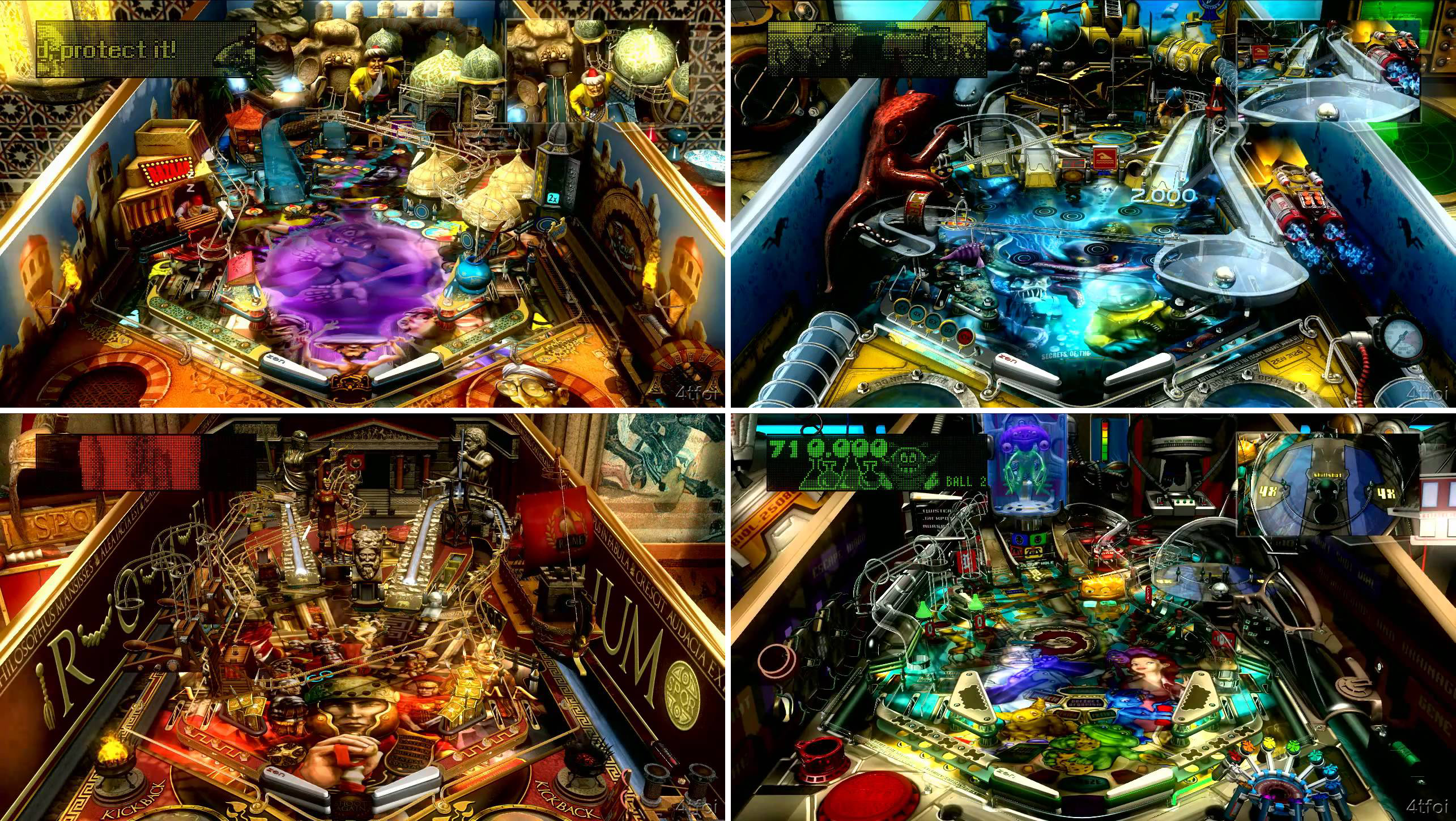 El otro core pack de genéricos es muy superior al original. No en vano estrenó un motor de físicas –se aplicó también a gran parte de los pinball antiguos- mucho más pulido y fiable. Por no mencionar la experiencia que acumulaba por entonces Zen Studio, dándole caña a la bolita. Ambientada en el Lejano Oriente de Aladino y Las mil y una noches (cómo ha cambiado el cuento, joder), Pasha combina una atmósfera sugerente y un diseño poco aparatoso con riqueza de recursos. Aparecen la lámpara del genio -si la frotas varias veces, su interior revelará un mini juego-, un trilero cabrón, el bazar de las sorpresas, el clásico oasis, una secta venera cobras, la alfombra voladora y danza del vientre a ritmo de electro árabe rollo Budha Bar.