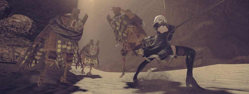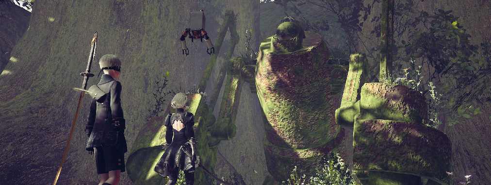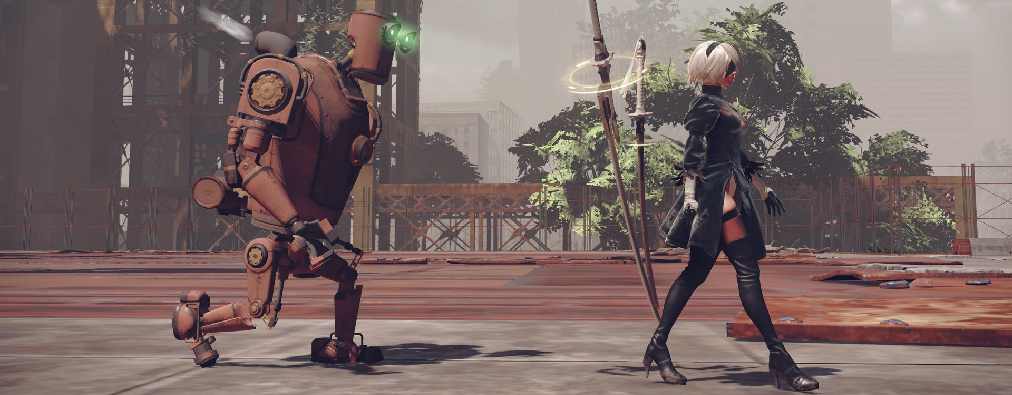 Cierto que las primeras horas de NieR: Automata conseguían meterte de nuevo en el mundo de NieR. Todo nos resultaba familiar y nuevo al mismo tiempo y de nuevo era la banda sonora que actuaba como nexo de unión entre original y secuela. El personaje protagonista era 2B, un androide femenino con tal culazo que ha conseguido que los gamers no se sintieran violentos al controlar una mujer (2B: 1-Aloy: 0), acompañada por otro androide masculino llamado 9S, ambos pertenecientes al escuadrón YoRHa. Su misión: controlar la actividad de los robots que habitan la tierra. Robots creados por una civilización alienígena que invadió la tierra y que ocasionó la huida de la humanidad hasta la Luna, donde aguardan que YoRHa les solucione la papeleta.